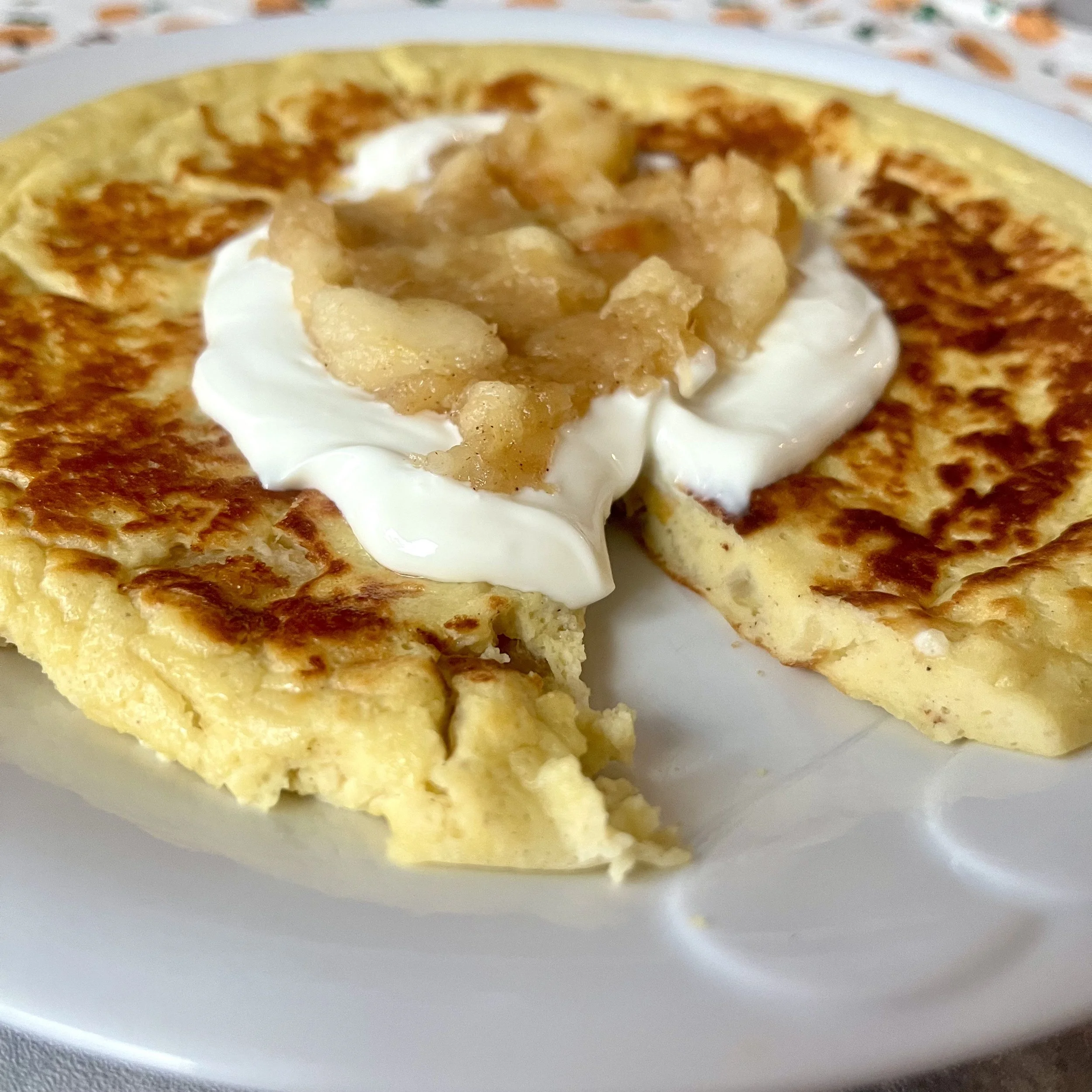 Puszysty, cynamonowy omlet z karmelizowanym jabłkiem- idealny na słodkie śniadanie.